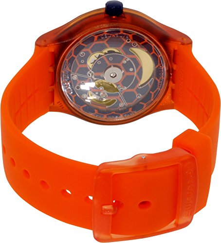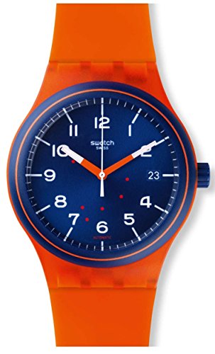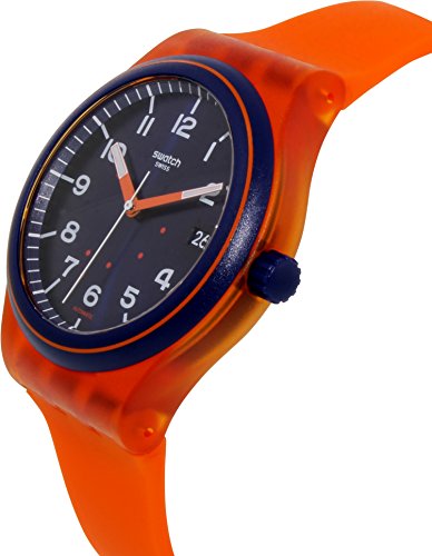 -. Title : Swatch SUTO401 Sistem Tangerine Blue Date Dial Orange Silicone Unisex Watch NEW