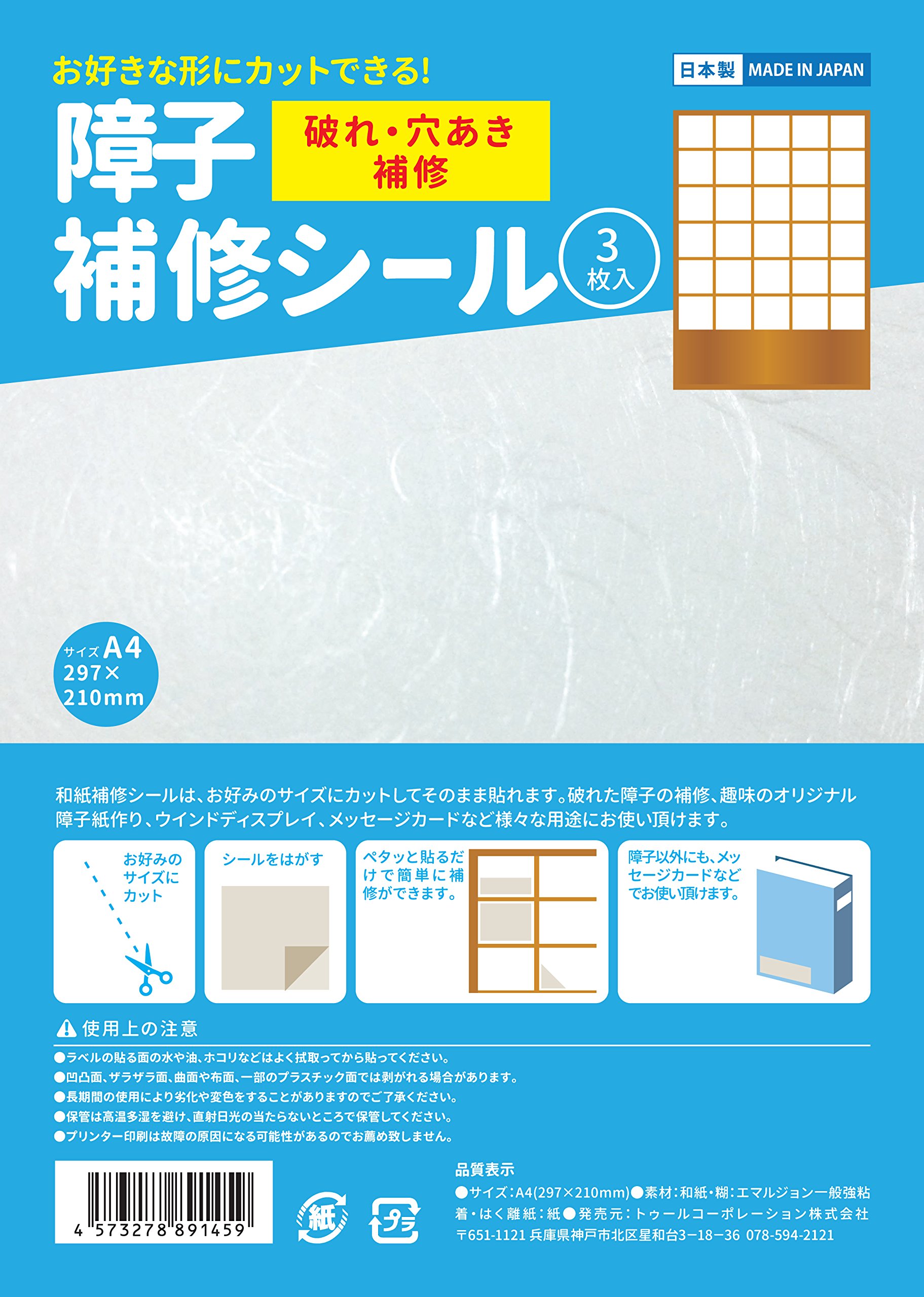 Washi repair seal can be applied as it is cut to the size and shape of your choice.