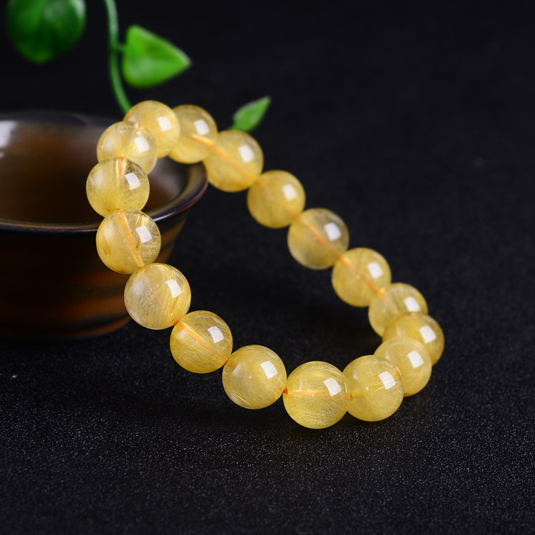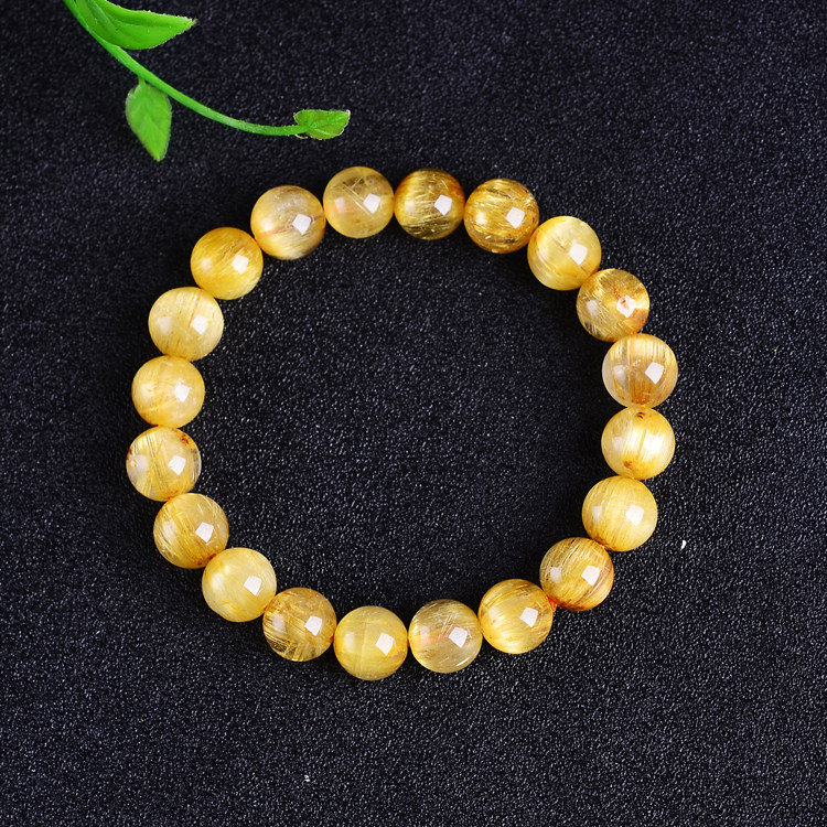 巴西天然金发晶手链 男女 黄发晶手串钛晶手链 发金手链