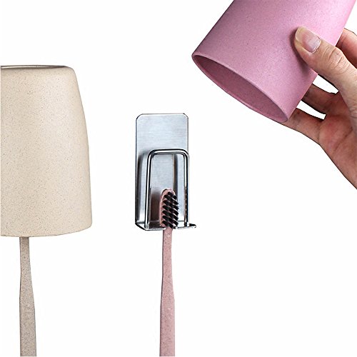 Langxian Toothbrush Holder with Gargle Cup Holder,Self-Adhesive Wall Mounted?Stainless Steel toothbrush Holder For bathroom or kitchen ((1 Pack))