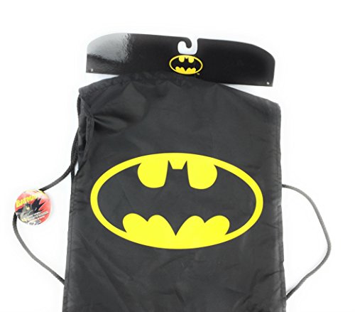 Product Description Concept ONE Accessories Batman Cape is 15 inches wide by 18.5 inches long with attached non-woven polypropylene drawstring Backpack that is 13 inches wide by 17.5 inches long. This bundle includes a Batman Magic towel that arrives as a small disc and grows to 11.75 by 11.75 inches when submerged in water. Batman and all related characters and elements copyright and TM DC Comics 0