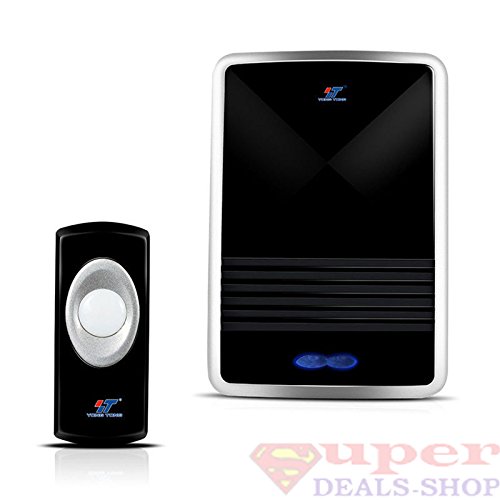 -. Feature : Wireless Doorbell are easy to Install, No wiring required You can install the Digital Wireless Doorbell in locations, such as kitchen, living-room, bedroom, etc. / 25 bell sounds / Door Chimes to choose from. Weather resistant push buttons / Remote control Doorbell / receiver distance: 100m(open area) / Color: Black & Gray Power: AC110V for receiver; Remote require 1 x 23A 12V Battery ( NOT INCLUDED ) / You dont miss any visitor with our Wireless Doorbell with Remote Control.
