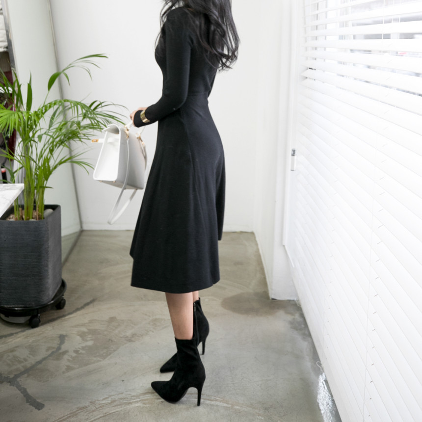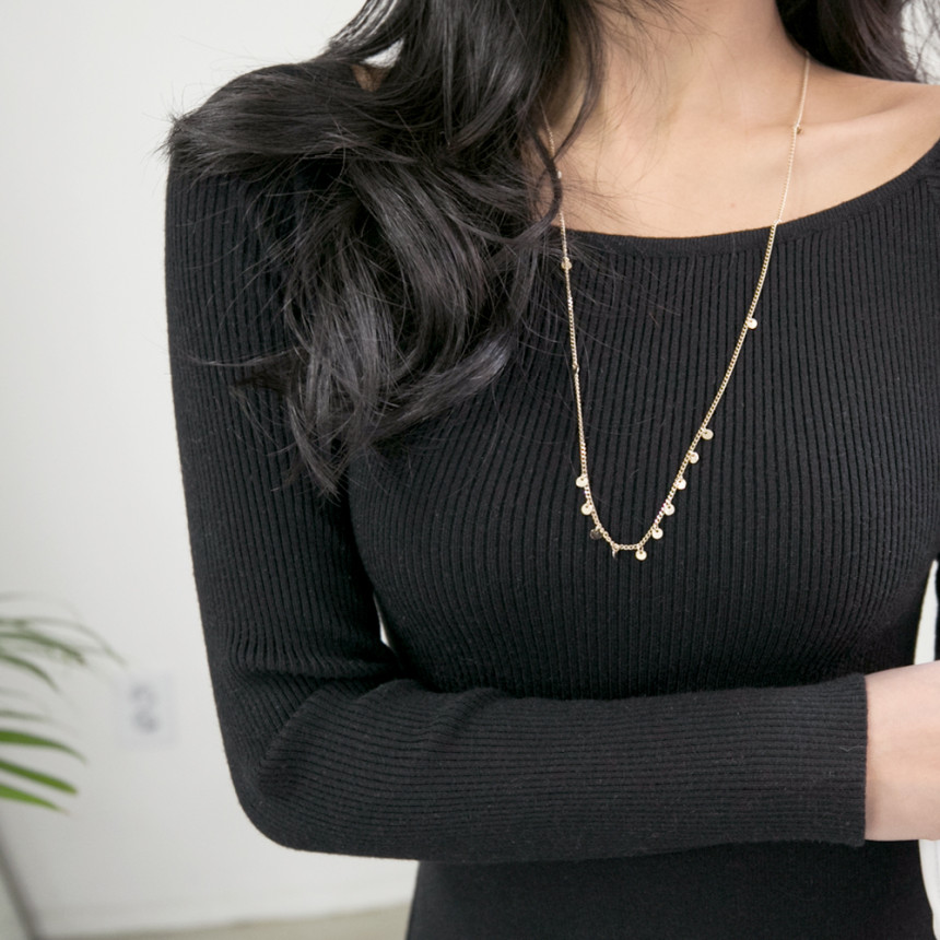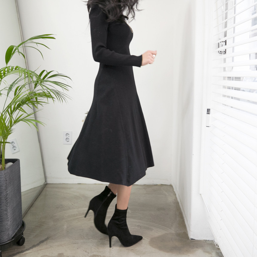 툭 떨어지는 여성스런 핏이 예술이에요. 탄탄한 스판면사에 실키한 레이온이 혼방된소재로 제작되었어요 핏되기보단 착장시 툭 떨어지는 핏으로 페미닌한 실루엔이 연출되며, 원사가 탄탄하다보니 어느정도 몸매보정을 기대할 수 있어요 깊은 네크라인으로 여성스런 어깨라인이 이쁘게 노출되어 더 매력적이고, 바스트 밑부분 다트 디테일로 다리는 길어보이면서 날씬하게 표현해드린답니다 :)