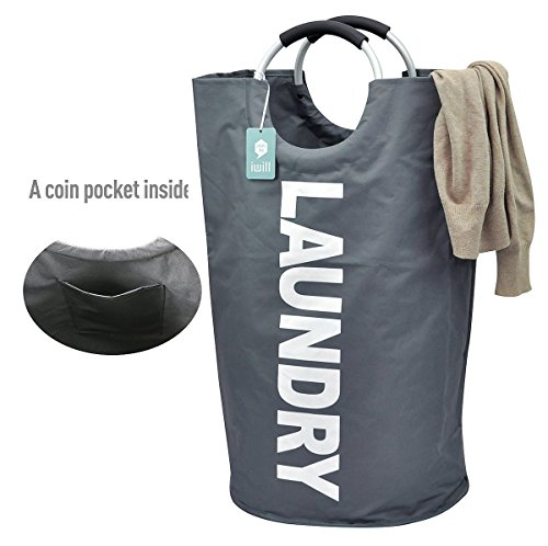 Collapsible College Laundry Bags for Heavy-duty Use with Alloy Handles, Deep Grey