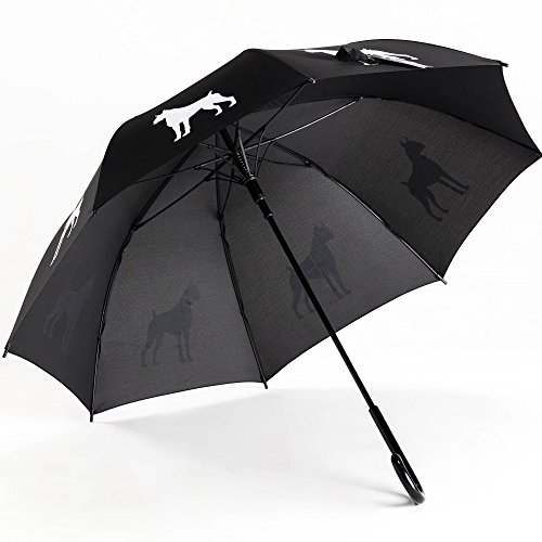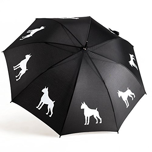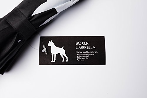Studio : The San Francisco Umbrella Company Publisher : The San Francisco Umbrella Company Binding : Apparel Product Description This super cool new black Boxer Umbrella from The San Francisco Umbrella Company is a classic English stick style umbrella that features a handsome white Boxer silkscreened across 8 panels of beautiful lush black fabric. It is a very fine quality umbrella for which we offer guaranteed free replacement in case of defect or damage for 3 years. Since 2012 The San Francisco Umbrella Company has made very high quality rain umbrellas. Most feature stunning silhouettes of dogs, cats, and other animals on gorgeous colorful canopies. We also make Sun and Rain Personal Umbrellas featuring Sunbrella fabric. Our umbrellas are made to old-world standards with fiberglass ribs for great strength and flexibility, steel shafts for durability, and auto-open and easy close for simple operation. These are some of the finest umbrellas in the world. Manufactured in Xiamen, China at one of the world's leading umbrella factories. 34.5 inch long, 40 inch wide canopy when open. 190T Pongee Polyester Canopy. Fiberglass ribs and arms. Plastic handle. Please note: we offer guaranteed free replacement in case of defect or damage for 3 years. 0