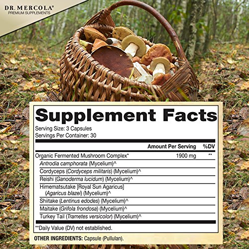 -. Binding : Health and Beauty -. Brand : Dr. Mercola -. Label : Dr. Mercola -. Manufacturer : Dr. Mercola -. ProductGroup : Health and Beauty -. ProductTypeName : HEALTH_PERSONAL_CARE -. Publisher : Dr. Mercola -. Studio : Dr. Mercola -. Title : Dr. Mercola Fermented Mushroom Complex - 90 Capsules - Made With Organic Mushrooms - 100% Certified Organic