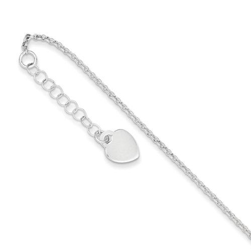 This 1.5mm cable chain wraps around the ankle with graceful sensuality and the polished 9mm heart charm adds a touch of romance. Fashioned from polished sterling silver, it is 9 inches in length and includes a 1-inch extender and fancy lobster clasp.Feature
