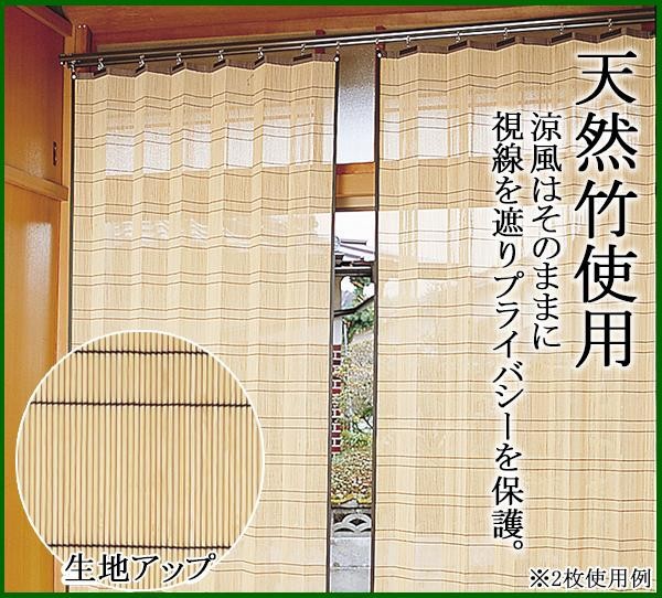 お使いのカーテンレールにかけて使える竹製カーテンです。強い日差しを美しい天然竹が柔らかい日差しに変え、涼感を演出します。