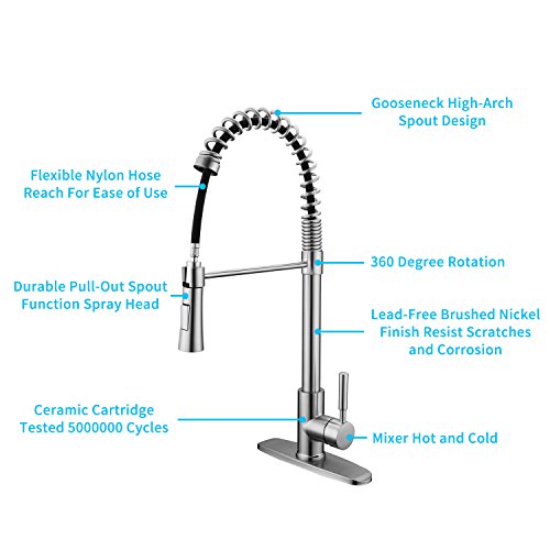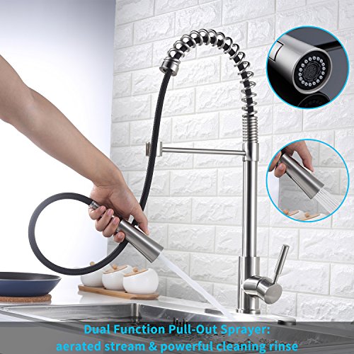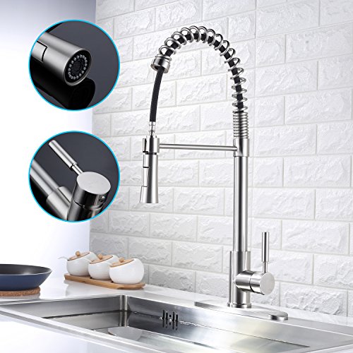 Homelody Brushed Nickel Single Handle Pull Down Kitchen Faucet Wih Pull Out Sprayer Sink Faucets, Lead Free Stainless Steel Kitchen Sink Faucet Taps