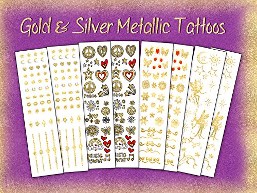 -. Title : Gold and Silver Metallic Temporary Tattoos - Made In The USA- over 200 Tattoos