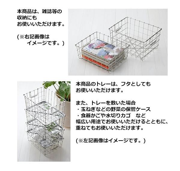 | 業務用と同じ構造で耐久性に優れ、端面の処理も丁寧です。しっかりとした持ち手付きなので、重いものも両手で持ち運び可能。トレーを敷いて使えば、玉ねぎやじゃがいもなどの根菜類の収納にも便利です。 |