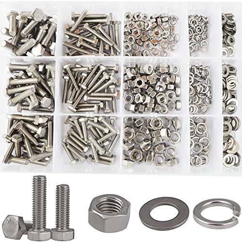 Hex Flat Head Bolts M4 M5 M6 Metric Screws Nuts Flat and Lock Washers Assortment Kit 304 Stainless Steel,510pcs