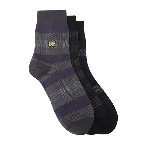 - 블럭 패턴 믹스의 남성 3족 SET 양말.