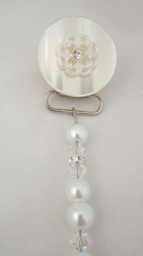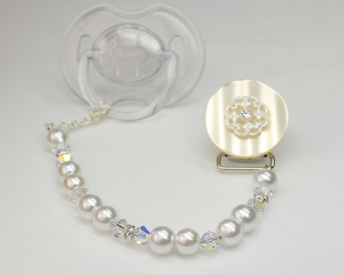 -. Title : Crystal Dream Elegant White Swarovski Crystals and Pearls Handmade Lacy Flower Keepsake Unisex Pacifier Clip (CLW)