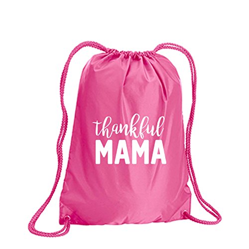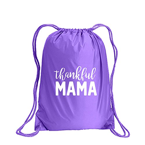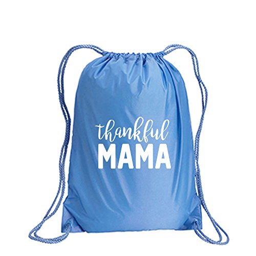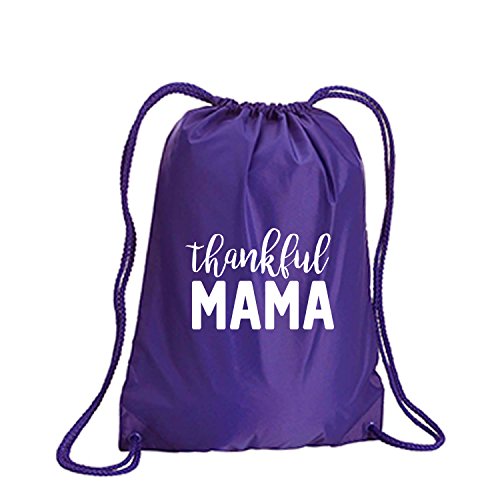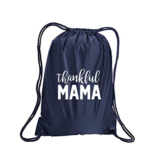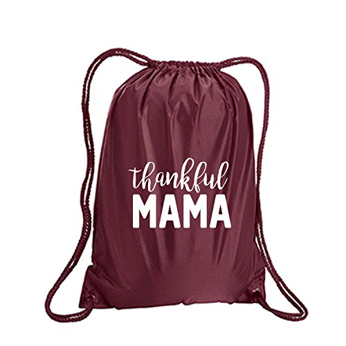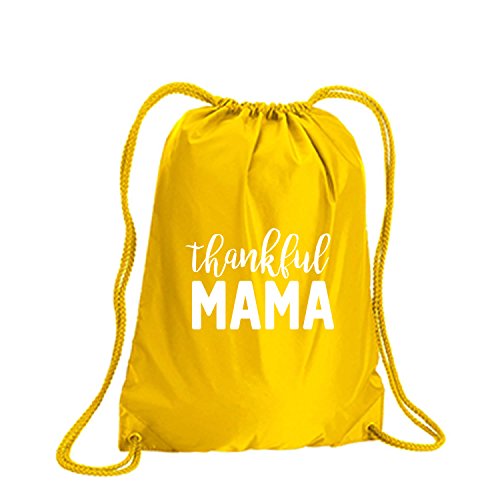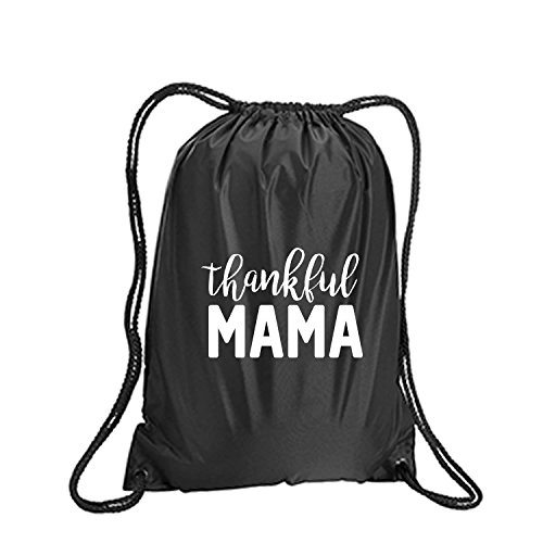 Product Description This durable and stylish nylon tote features "Thankful MAMA" on a cinch pack tote with white ink. Bag comes in small and large sizes and is made of a durable 210 Denier nylon and has color-matched draw cords. Printed in the USA on an imported bag. 0