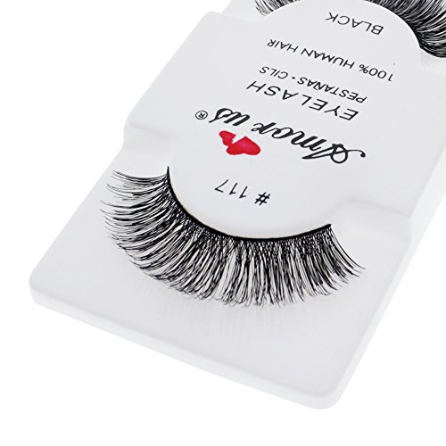Amorus 12 Pairs Multipack #117 False Eyelashes Dozen Set 100% Natural Hair Black Handmade Comfortable Reusable Strip Fake Lashes Pack