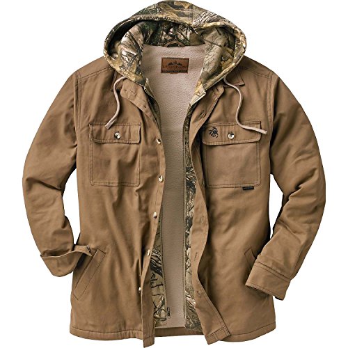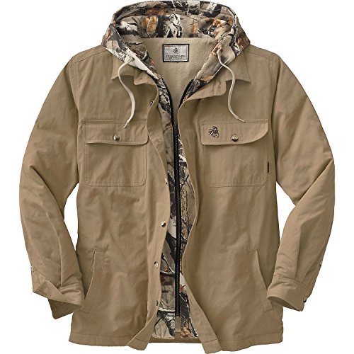 Studio : Legendary Whitetails Publisher : Legendary Whitetails Binding : Misc. Product Description This shirt-jac has it all!? Including a soft washed 100% cotton canvas shell, super soft micro-fleece lining, quilted satin lined insulated sleeves, and Realtree® Xtra zippered placket and hood.? Plus, convenient hand-warmer pockets, button-down chest pockets, embroidered Legendary® Signature Buck logo and three button adjustable cuffs. Simply loaded. Big Tall sizes are designed for men over 6'2" and add 2" in body length and 1-1?2" in sleeve length Material: 100% Cotton canvas shell and 100% Poly micro polar fleece Wash: Machine wash cold, with like colors. Do not bleach. Tumble dry low. Do not iron on decoration. 0 |