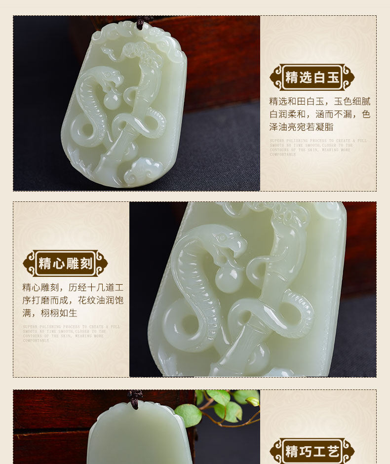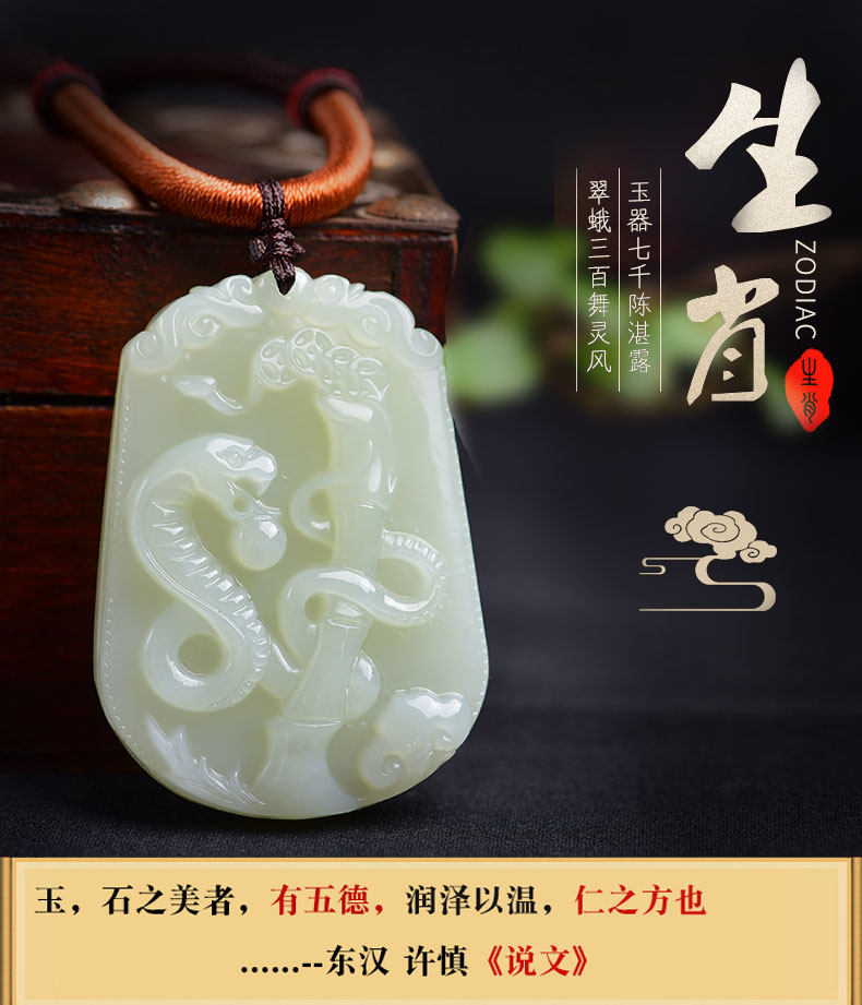 开光和田玉十二生肖吊坠属蛇白玉挂件男女款项链玉坠玉佩饰品礼物