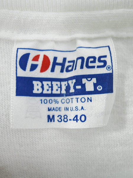 Ladies ブランドHanes BEEFY T カラー白ベース メール便不可 コンディション★★★ 素材コットン 表記サイズM スタッフコメント左袖口に小穴あり。 実寸サイズ 着丈 63 cm 身幅 46 cm 肩幅 46 cm 袖丈 18 cm ※ウエスト・ヒップ以外は平置き採寸