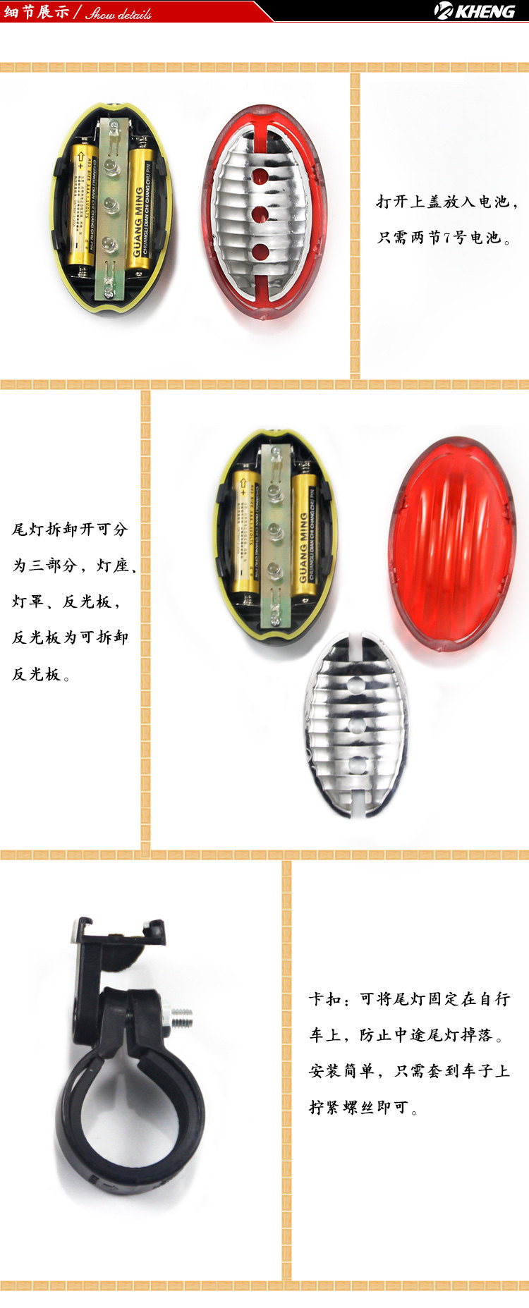 KHENG恺亨 死飞5LED自行车尾灯骑行装备配件安全后灯山地车警示灯