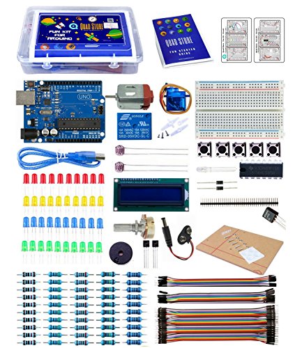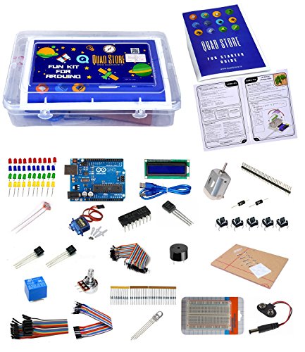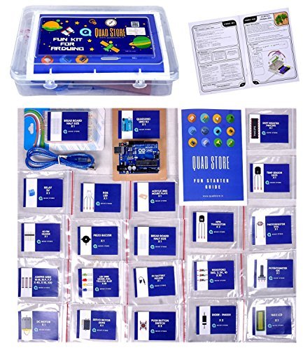 Quad Store - Fun Arduino Starter Kit with book and printed circuit. Best suited for all age group and we guarantee that anyone can build the projects using our fun kit and guide provided.