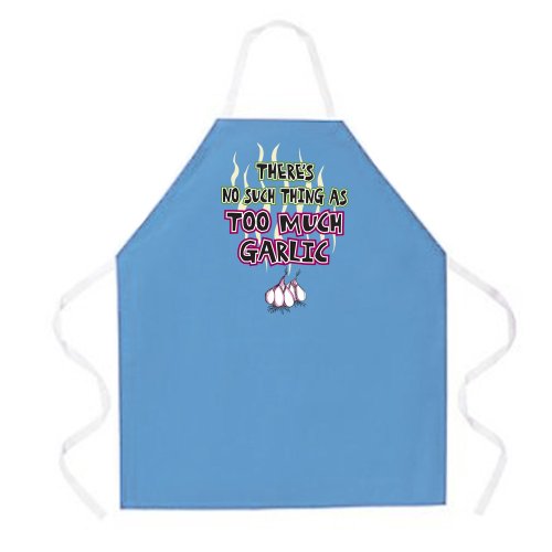 Attitude Aprons Fully Adjustable Too Much Garlic Apron, Light Blue, One Size Fits Most