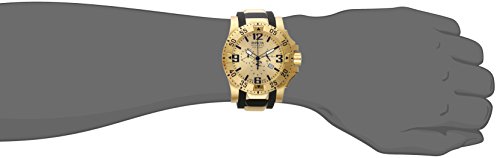 -. Feature : Precise, high-quality Swiss-quartz movement / Durable flame-fusion crystal; brushed 18k gold-plated stainless steel case; black rubber strap / Chronograph functions with 60 second, 30 minute and 1/10 of a second sub-dials; date function / Gold-tone dial with luminous hands; black Arabic numerals and hour markers; screw down crown / Water resistant to 660 feet (200 M): suitable for recreational scuba diving