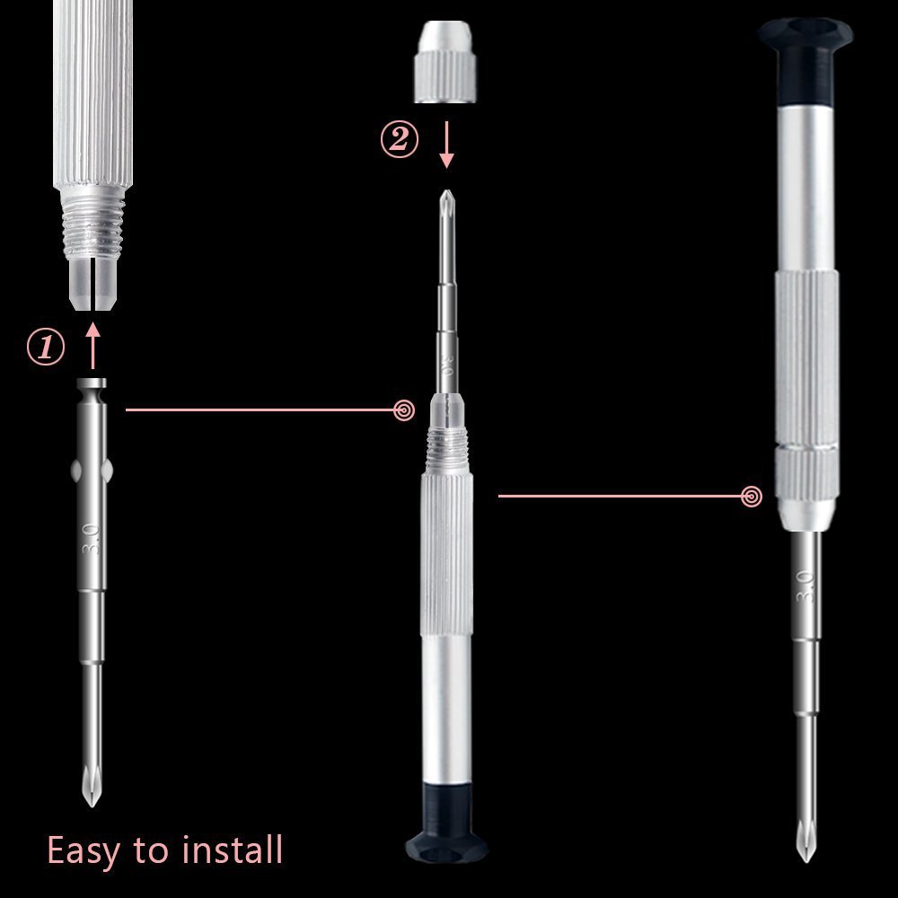 One Phillips screwdriver 2.5 / 2.0 / 1.5 / 1.3 / 1.0 mm each,