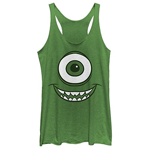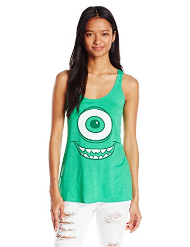 Mike wazowski has his eye on you with the monsters Inc. Mike wazowski eye heather green racerback tank top. Dress up as your favorite round green monster with this monsters Inc. Tank top that features mike's famous eyeball.