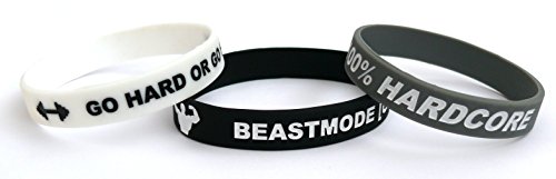 Studio : sportwristbands.net Publisher : sportwristbands.net Binding : Misc. Product Description YOUR PERSONAL FITNESS MOTIVATION ☆ ☆ ☆ ☆ ☆ Band 1: GO HARD OR GO HOME (white) Band 2: BEASTMODE [ON] (black) Band 3: 100% HARDCORE (gray) Shipping Amazon gives a shipping duration to America/Canada/Mexico of 31 days. According to our experiences, in 99% the shipping time is below 12 days! You can also choose three individual wristbands from our collection below! Just write us an email or a "message to the seller" directly after the payment process with your whished ones. BLACK COLOURED: 1. EAT SLEEP TRAIN REPEAT 2. BEASTMODE [ON] 3. BREAK YOUR LIMITS 4. #Conquer 5. train.insane.or.remain.the.same 6. Veni Vidi Vici (not debossed) GRAY COLOURED: 7. NO PAIN NO GAIN (dark gray) 8. #eatclean #trainhard (dark gray) 9. 100% HARDCORE 10. no.excuses 11. #crossfit WHITE COLOURED: 12. EAT SLEEP TRAIN REPEAT 13. GO HARD OR GO HOME 14. SHREDDED AESTHETICS 15. train.harder.become.stronger 16. work.out 17. SHUT UP AND TRAIN For questions, do not hesitate to contact us! 0