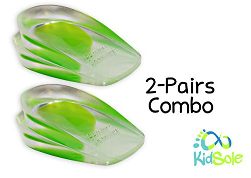 2 Pack - KidSole Shock Absorbing Lightweight Gel Heel Cups For Kid's With Sensitive Heels, Heel Spurs, Plantar Fasciitis, or Ankle Pain (Green Kids Size 2-6)