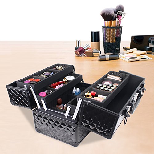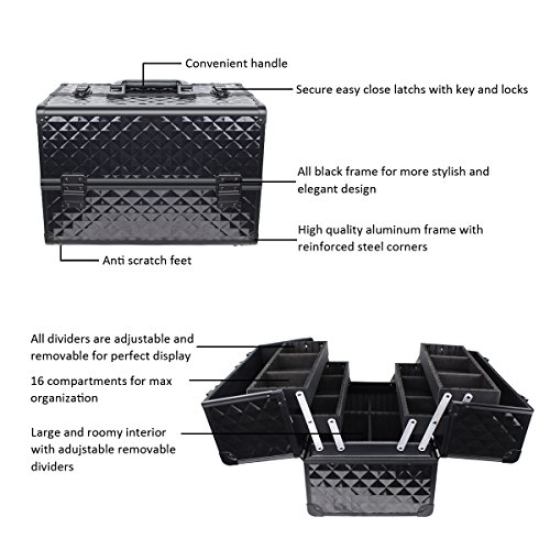 STURDY & BALANCED: Aluminum frame and reinforced corners make the makeup train case sturdier; upgraded hinge provides great support & perfectly balances both sides so it will not tip over when opened.