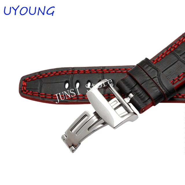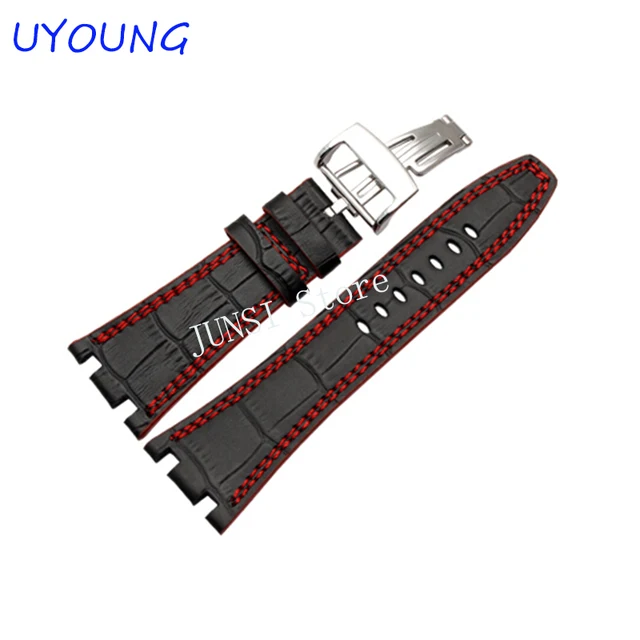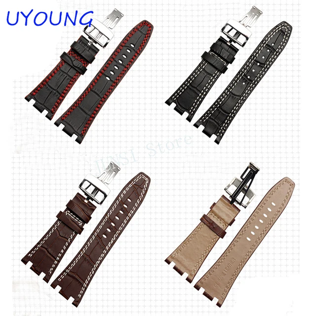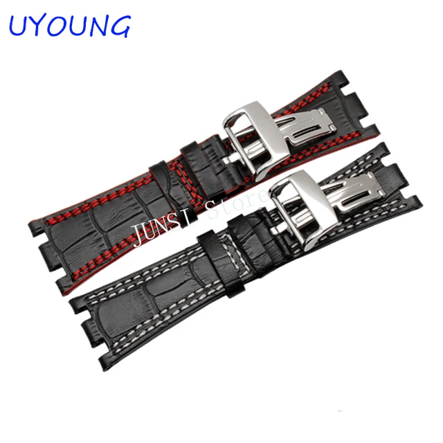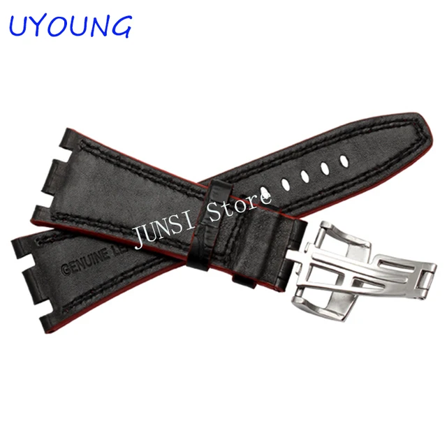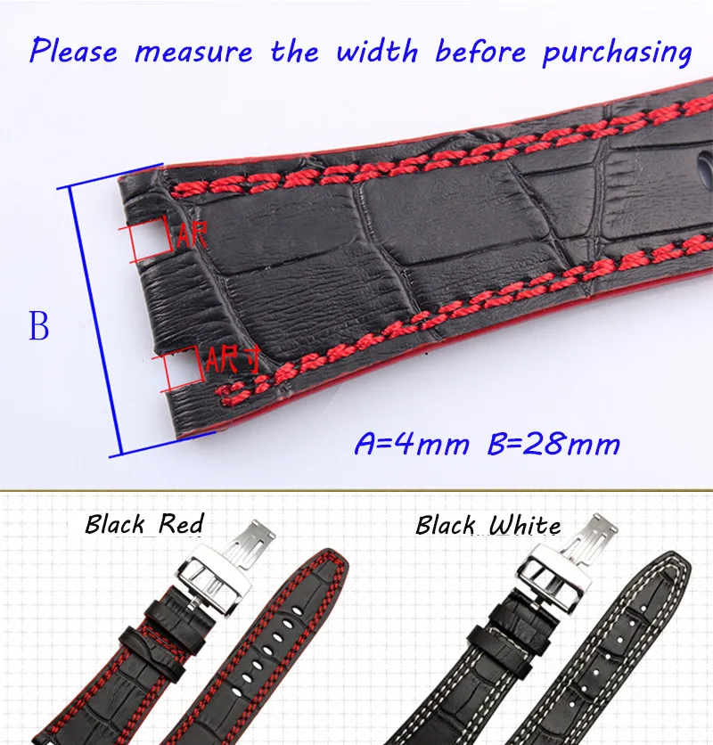 [해외] 품질 정품 가죽 손목 + 접이식 걸쇠 남성 28 미리메터 망 시계 스트랩