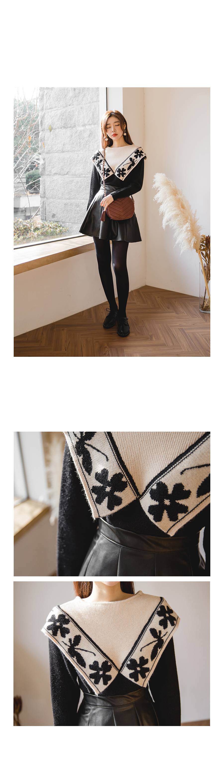구김이 적고 은은한 광택감의 레더원단으로 고급스럽고