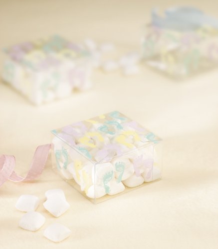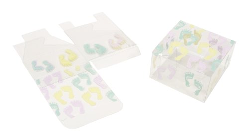 - Small PVC baby shower favor box with special tiny pink, yellow and green feet design