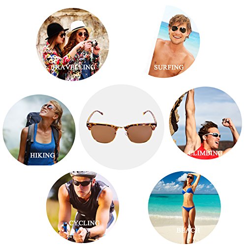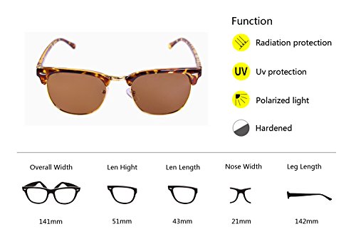 This retro clubmaster style polarized are made of high quality material and it is comfortable to wear this lightweight sunglassses to protect your eyes by blocking 100% harmful UVA and UVB rays.