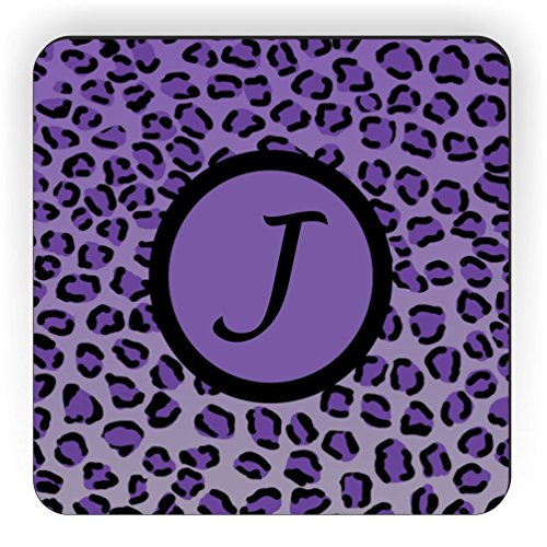 Rikki Knight Letter "J" Initial Purple Leopard Print Monogrammed Design Square Fridge Magnet