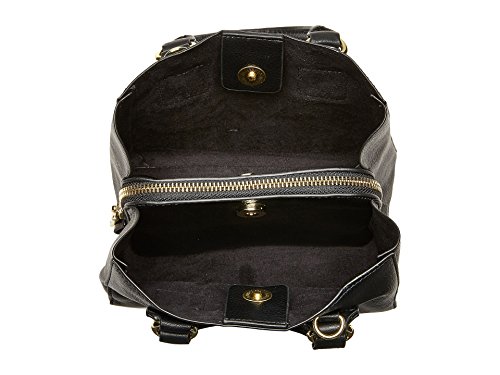 Be absolutely fabulous with the Steve Madden® Bmicro Triple Entry Satchel. Durable faux-leather construction with metal brand plating on the front. Rolled carry handles and a removable crossbody strap. Magnetic snap closure on the unlined main compartment. Interior includes a full-length zippered divider pocket. Imported. Measurements: Bottom Width: 7 in Depth: 4 in Height: 6 in Strap Length: 49 in Strap Drop: 23 in Handle Length: 10 in Handle Drop: 4 in Weight: 14 oz This product may have a manufacturer's warranty. Please visit the manufacturer's website or contact us at warranty@support.zappos.com for full manufacturer warranty details.Feature