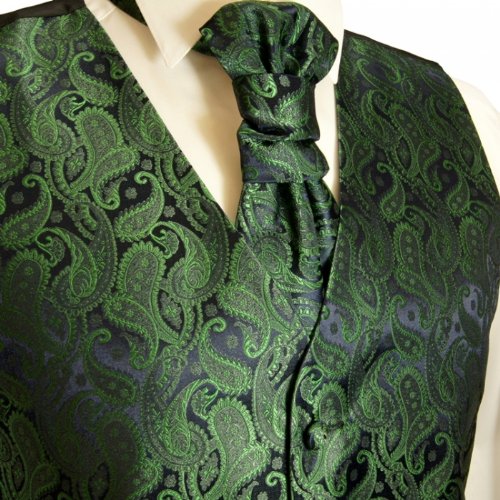 - Title : Emerald Green Paisley Wedding Vest with Tie , Cravat, Pocket Square and Cufflinks