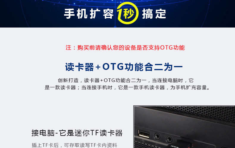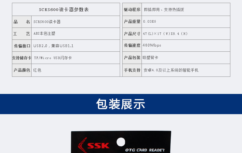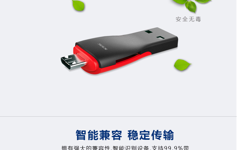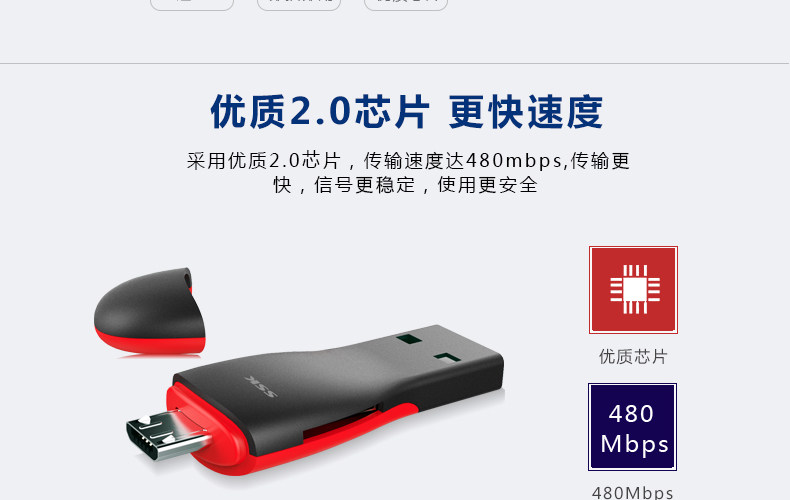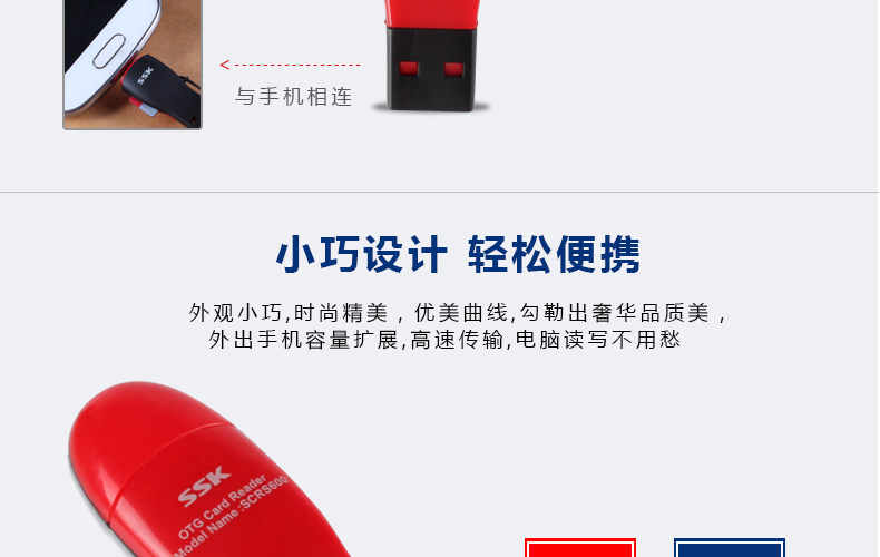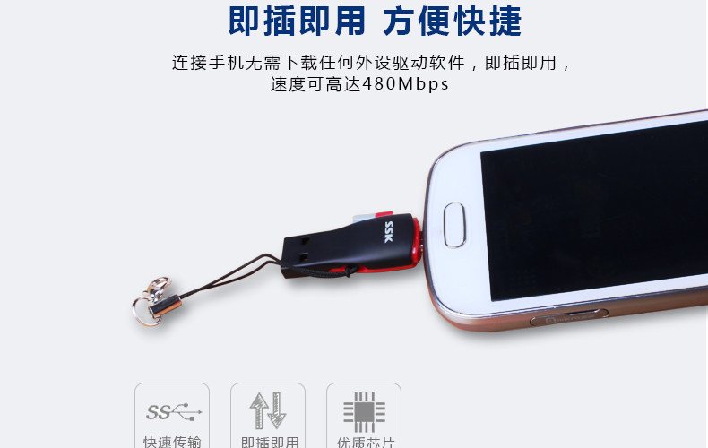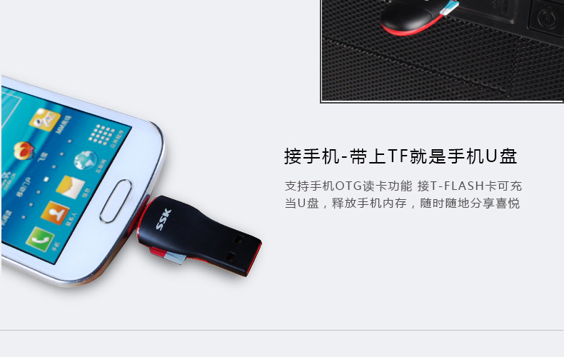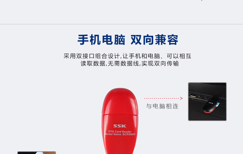 SSK飚王SCRS600 TF/micro usb 手机 电脑两用OTG读卡器多功能迷你