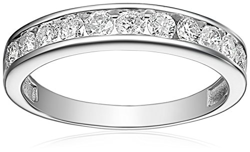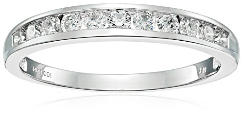 Give her a gift of the 14k Gold Round Diamond Anniversary Band to make her feel as admired as a queen. This ring is a mix of traditional and modern, cast in 14k gold for an heirloom-quality finish that will last for years to come. Graced with a single row of 11 channel-set round white diamonds across the front, the ring measures 3.5 millimeters wide. The good-cut diamonds boast IJ color and I2-I3 clarity for a total of 0.5 carats. The diamonds are edged with narrow gold borders that circle around to the smooth back of the band. This ring makes the perfect anniversary gift for that special someone to wear and treasure every day of your lives.Feature