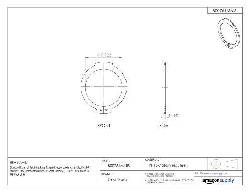 Standard External Retaining Ring, Tapered Section, Axial Assembly, PH15-7 Stainless Steel, Passivated Finish, 1" Shaft Diameter, 0.042" Thick, Made in US (Pack of 5)