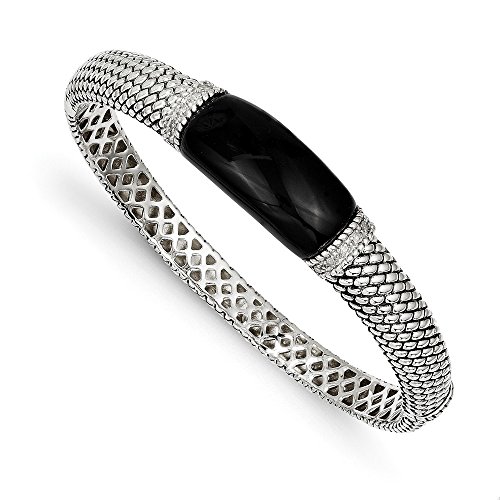 -. Title : Sterling Silver Onyx & 1/10ct. Diamond Bangle Bracelet