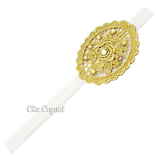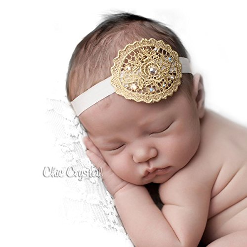 Binding : Apparel Product Description This lace vintage headband from ChicCrystalsBoutique is a precious accessory that your baby girl can wear for any occasion. Meticulously handmade from a length of soft stretch band, it is adorned with an oval lace applique that is embellished with sparkling Swarovski crystals to complete the look. Whether she is attending a formal event or a casual get-together with friends, this sumptuous headband will make sure that she is the center of attraction. It also makes an attractive photo prop for baby's first photo shoot. This is a limited edition ChicCrystalsBoutique original. Order now to guarantee availability. 0