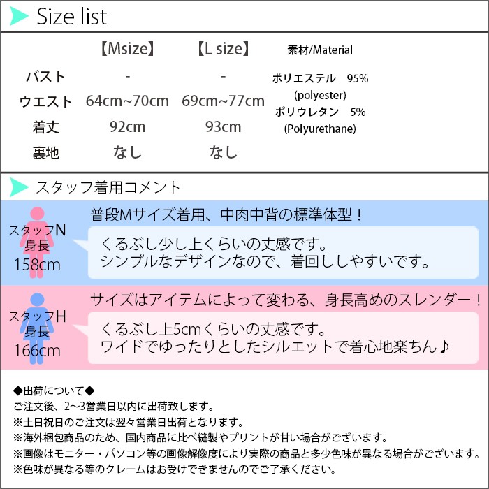 | 注意点 | ▼綿混合商品は洗濯時に多少縮む事がございます。 ▼パソコン、モニター等の環境により、実際の商品素材カラーが多少異なる場合が御座います。予めご了承ください。 ▼お手数ですが必ずお買い物ガイドを一読頂いてからご利用いただきますようお願い申し上げます。 |