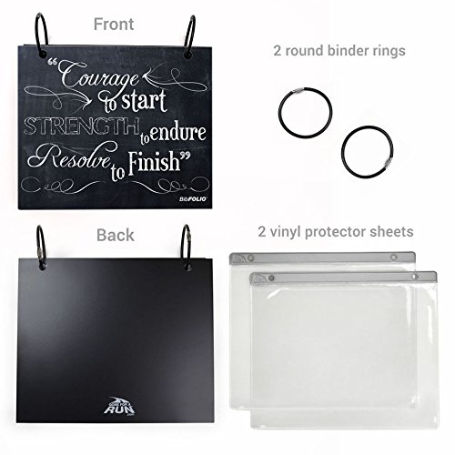 DISPLAY YOUR RACE BIBS WITH PRIDE! Easily add and organize your race bibs by opening the rubberized round binder rings and sliding your bib thru the pre-existing holes. You can further protect and display your bibs, by using our BibFOLIO® Race Bib Protector Sheets (12 included). Use the sheets to display your race bibs, photos, or medals from all your races! (display stand not included)