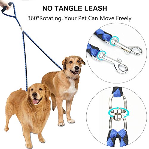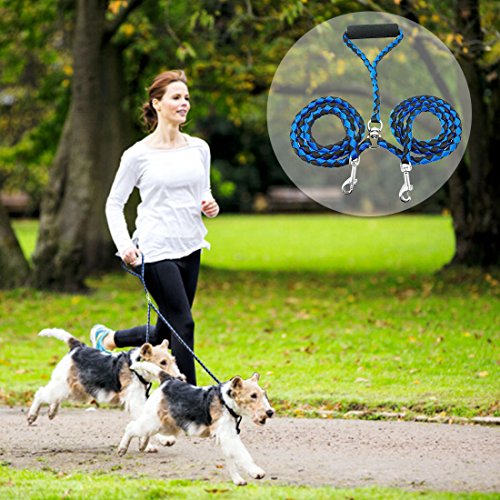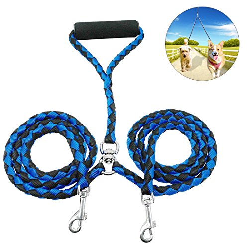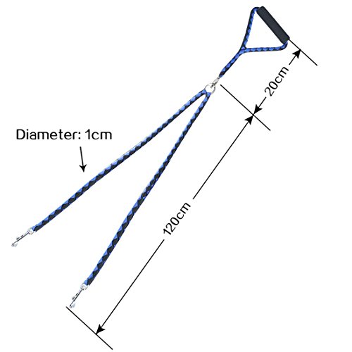 Studio : Idepet Publisher : Idepet Binding : Misc. Product Description NO TANGLE DESIGN This swivel clasp design allows automally adjusting when dogs criss cross.It means no tangle leashes,dogs can move back and forth easily.No limtation for your dogs while moving from side to side without messing the leash. SOFT HANDLE DESIGN Puffs cotton handle, soft and comfortable, easy to hold on,perfect to protect your hands.Double leash system makes it easy and comfortable,rugged enough for 2 dogs. EASY CONTROL LENGTH Whole length is 140CM,easily control different size breeds, from small dogs to medium dogs. USE RELAXDAILY Control the pulling without any extra effort needed.A great puppy leash for training. PACKAGE INCLUDED 1 x Double Dog Leash SPECIFICATION Material: Nylon Polyester Length: 140CM/55' Weight: 220g Color:Blue-Black 0