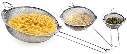 - Top quality fine mesh makes this strainer set as ideal for skimming light stock & fruit pulp as it is for draining super heavy loads of pasta and other weighty food materials.