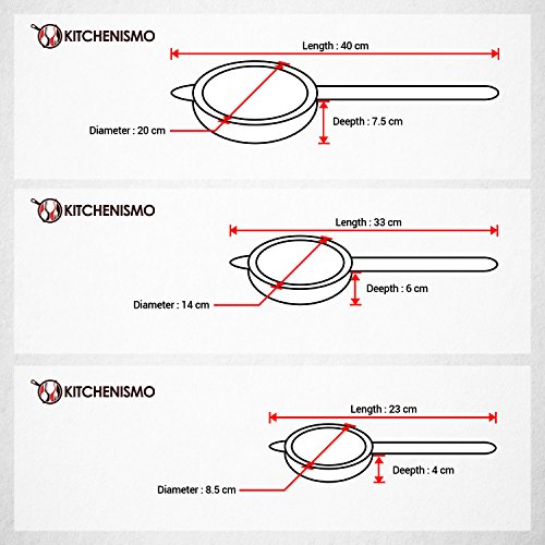 Simply put, there's no higher-quality, 3 PC. stainless steel fine mesh strainer set. See for yourself why our rugged 3 PC. design with a mirror finished rims is chosen by chefs, internationally, for their own homes and commercial kitchens.