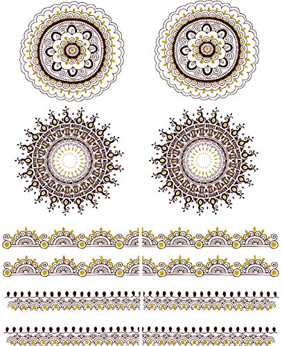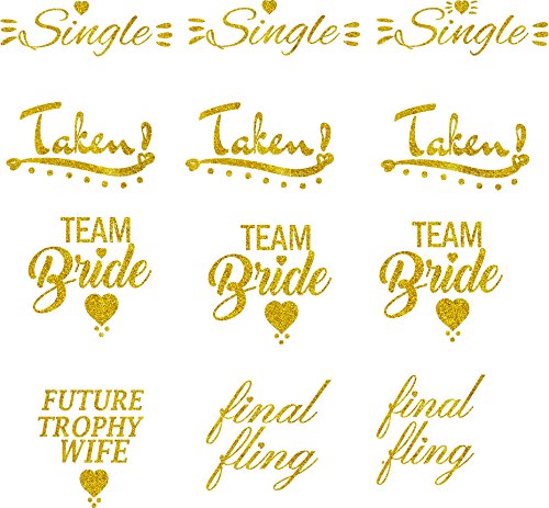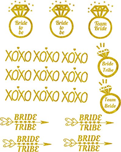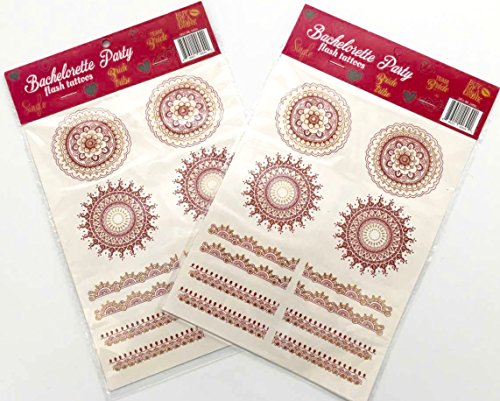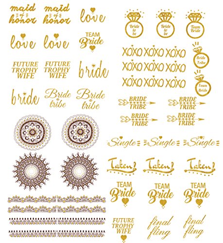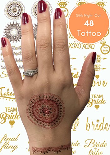Bachelorette Party Tattoos (UNIQUE SET) 48 Metallic Shiny Gold Flash Tattoos, Exclusive Team Bride Heena Tattoo Included, Beautiful Temporary Flash Tattoos